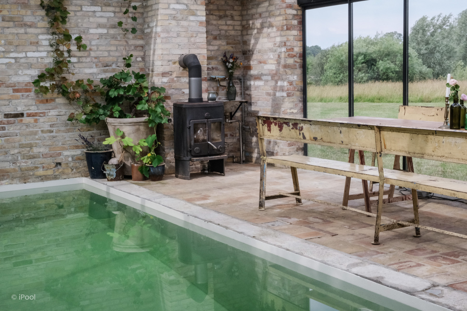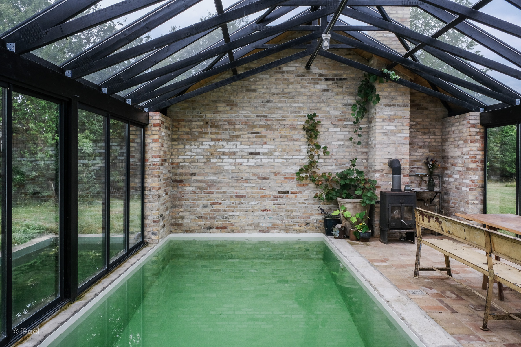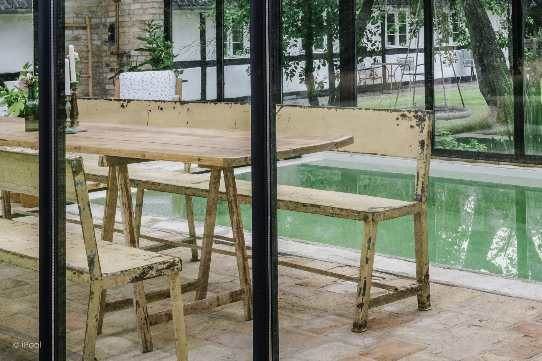 Midt i et lyst og indbydende orangeri ligger denne biopool – en bæredygtig og smukt designet oase. Den udviser, præcist dét den er – et åbent, ærligt vandelement, der opløser bekymringerne og inviterer til afslapning.
